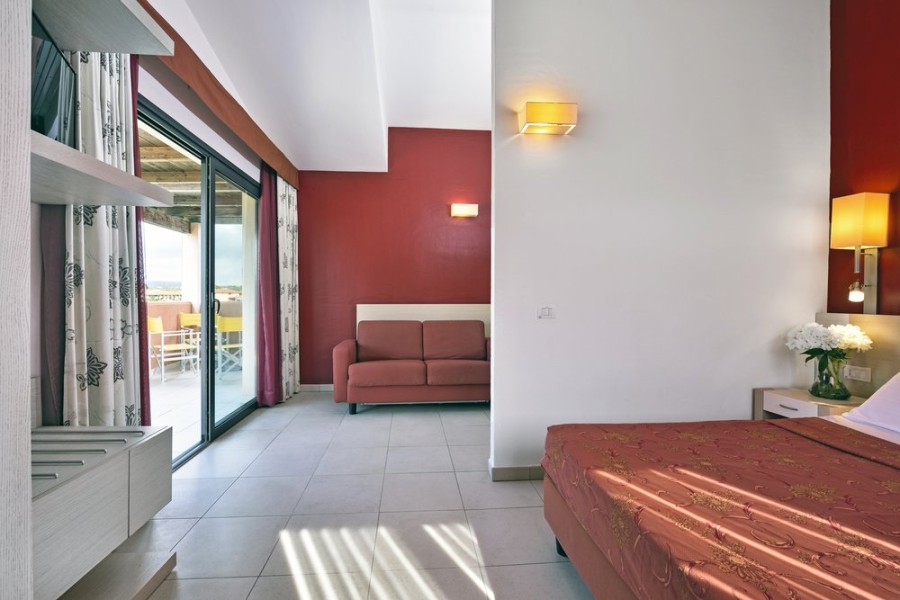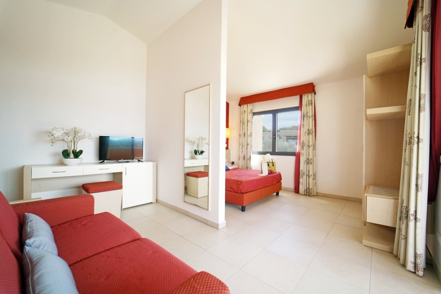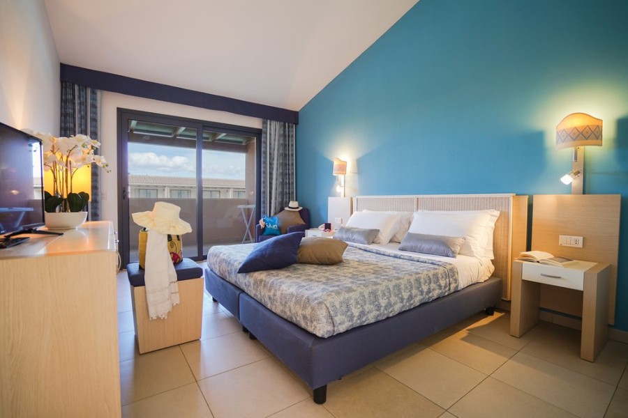 SISTEMAZIONE: Le camere, disposte al piano terra o al primo piano, alcune con balcone, sono tutte dotate di tv, cassaforte, minibar (allestimento su richiesta), telefono, aria condizionata, servizi con asciugacapelli. Camere Standard per 2/4 persone composte da letto matrimoniale e 3°/4° letto in poltrona letto, divano letto o letto a castello (3°/4° letto consigliato per ragazzi fino a 16 anni). Camere Standard con soppalco per 4 persone, più ampie, con letto matrimoniale in soppalco e divano letto al piano terra. Camere Family per 4 persone, composte da doppio ambiente, con divano letto ad 1 piazza e mezza. Disponibili camere per diversamente abili.