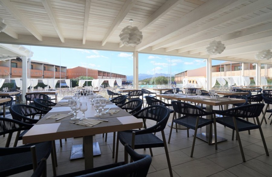 RISTORAZIONE: Pasti a buffet con cucina mediterranea ed internazionale, cena tipica sarda settimanale, sala interna climatizzata con veranda coperta e sala esterna (tavoli non assegnati). Acqua, vino e soft drink inclusi ai pasti principali (alla spina da dispenser). Possibilità di cucina per celiaci con prodotti base privi di glutine (da segnalare alla prenotazione, non garantita assenza di contaminazione).