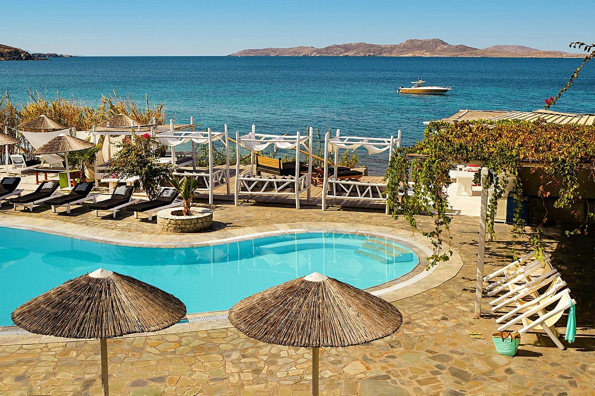 Il servizio personalizzato, le strutture straordinarie, le camere e le suite sottilmente lussuose e il personale impeccabilmente educato, combinati con i panorami maestosi, l'atmosfera insopportabilmente rilassante e la vivace vita notturna della città di Mykonos a un tiro di schioppo, rendono l'Hippie Chic Hotel il massimo santuario per R&R totale a Mykonos, la meta di vacanza cosmopolita più famosa della Grecia. Se desideri il sole e la sabbia, non cercare oltre questo hotel di design, nuovo e incredibilmente alla moda a Mykonos.
