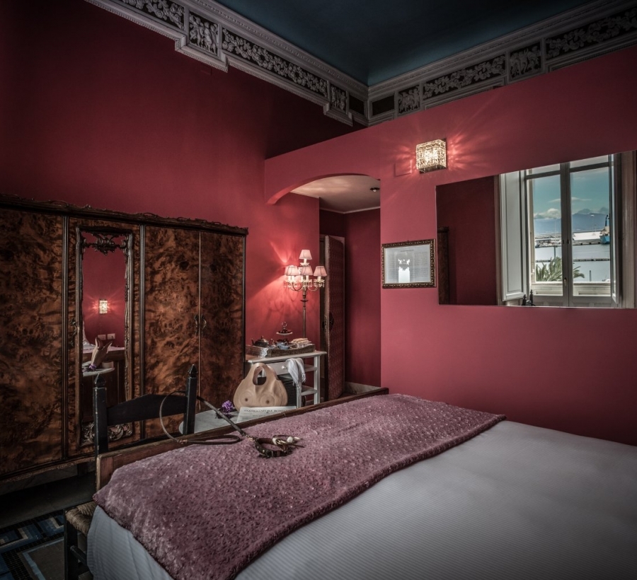 Le camere del Miramare Cagliari Hotel Museo sono arredate con mobili eleganti del XX secolo. Alcune vantano soffitti decorati, altre un balcone con vista mare.