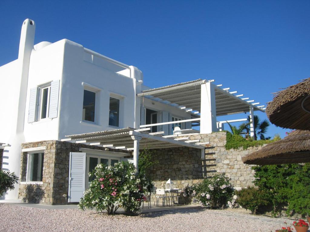 Mykonos Villa in affitto "Mar y Sol" si trova nella costa meridionale dell'isola di Mykonos, nell'area più ampia della spiaggia di Lia, in cima a una piccola collina, con vista sul Mar Egeo e a pochi passi dalla tranquilla spiaggia di Lia. Composto da due edifici adiacenti e interconnessi, in una combinazione di architettura tradizionale cicladica e serenità ambientale, può essere l'ideale per famiglie o gruppi di amici, che amano godersi momenti di comfort e relax.
