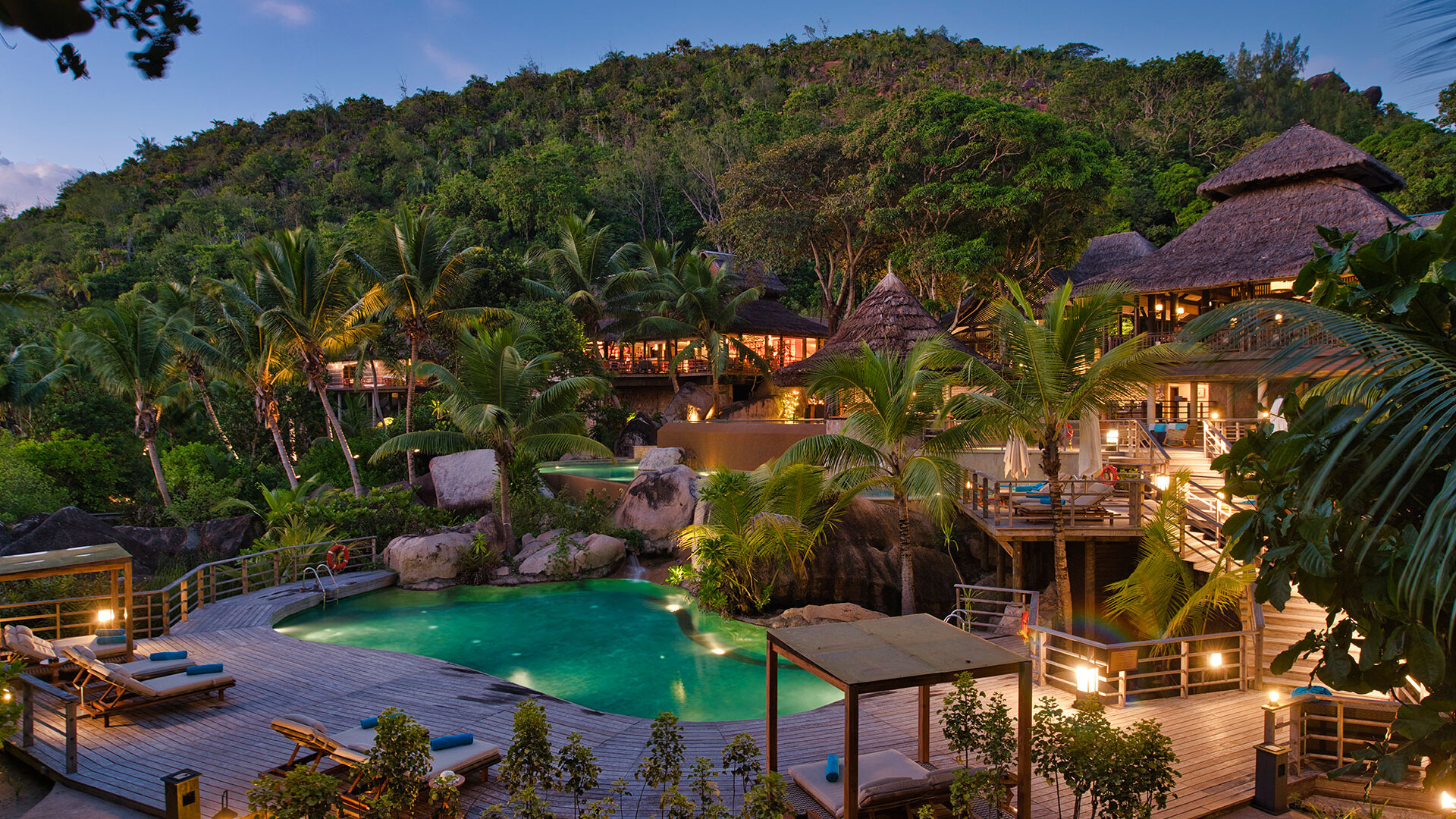 Constance Lémuria è un lussuoso resort situato sulla costa nord-ovest dell'isola di Praslin nelle Seychelles, noto per la sua straordinaria bellezza naturale e i servizi eccezionali. Immerso tra tre splendide spiagge e circondato da una vegetazione lussureggiante, il resort offre una fuga serena per i viaggiatori che cercano relax e avventura. Il Constance Lémuria combina un design moderno con materiali locali, creando un'atmosfera accogliente che si armonizza con il paesaggio mozzafiato​.