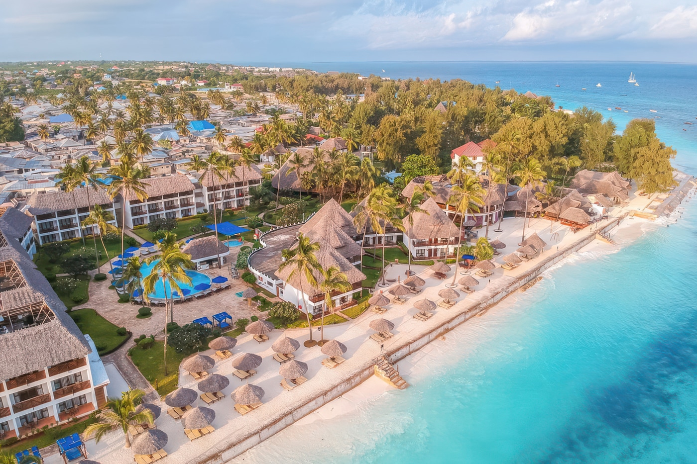 Il Gold Zanzibar Beach House & Spa si trova sulla splendida spiaggia di Kendwa, nell'isola di Zanzibar, famosa per la sua sabbia bianca e il mare cristallino. Questo resort di lusso è perfetto per chi cerca un'esperienza tropicale in un ambiente esclusivo e raffinato. Il resort offre accesso diretto a una delle migliori spiagge dell'isola, dove gli ospiti possono godere di una tranquillità senza pari, accompagnata da un servizio impeccabile.