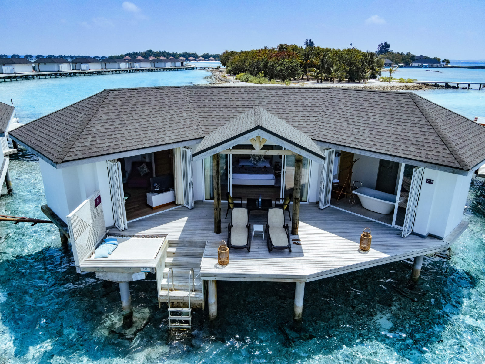 Il Resort offre una gamma di sistemazioni che riflettono la bellezza tropicale dell'isola. Le sistemazioni comprendono Beach Bungalows, che offrono accesso diretto alla spiaggia e splendide viste sull'oceano, e Water Bungalows, che si trovano sopra le acque turchesi, permettendo di godere di una vista panoramica e di un'esperienza di lusso unica. Gli interni sono caratterizzati da tonalità vivaci che richiamano i colori dell'isola, unendo un design moderno a un'atmosfera accogliente.