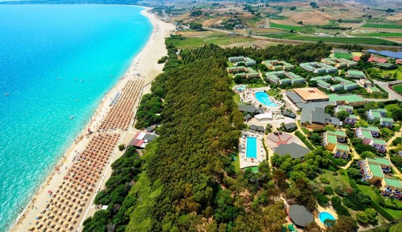 Abbracciata da un bosco di eucalipti, dista 300 m circa dalle camere. A disposizione degli ospiti barche a vela e windsurf (salvo negli orari dei corsi), canoe, pedalò, campo da beach tennis, campo da beach volley e servizi del Bluserena SeaSport (alcuni a pagamento). La balneazione sicura (in acqua bassa) è possibile in una fascia di 5 metri dalla battigia: a 2 m il fondale marino è a 120 cm, a 5 m il fondale marino è a 160 cm circa. Le caratteristiche del fondale possono variare nel tempo. Il resort è privo di barriere architettoniche. In spiaggia è a disposizione una sedia JOB, specifica per il bagno in mare e, a richiesta, è possibile noleggiare sedie a rotelle. Non sono previsti servizi di accompagnamento individuale. Assistenza bagnanti garantita dalla presenza dei bagnini negli orari esposti.